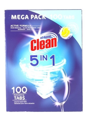 Nie zwlekaj! Zmień swój codzienny obowiązek w przyjemność. Kliknij i dodaj do koszyka 100 sztuk tabletek At Home Clean 5w1, by cieszyć się doskonałymi efektami mycia już od pierwszego użycia!